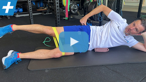 Banded Hip Abduction - Standing, One Leg Ball Squat, Side Plank (Knees), Side Plank (Push / Pull)