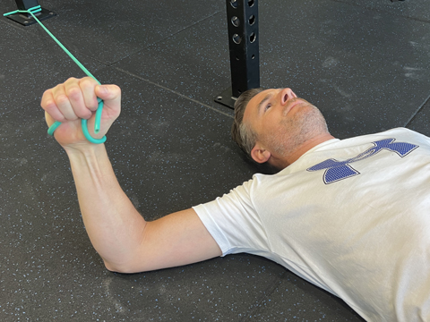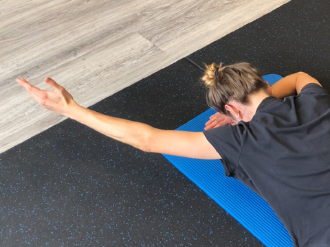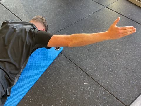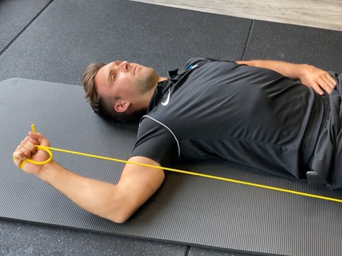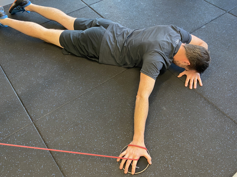S3 | 1 Arm Scapula Press and Arm Raise - Floor (Band)