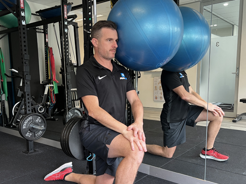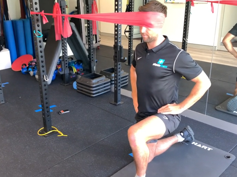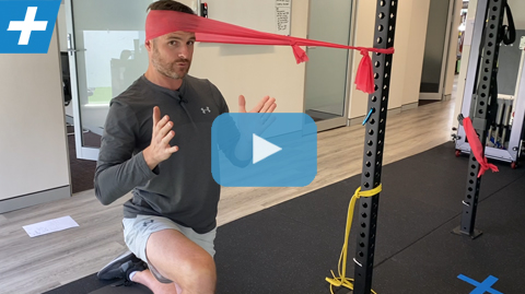 Put the band around your head as shown and get in a half kneeling position at an appropriate distance away from the pole to provide the optimal amount of resistance. The band should be attempting to pull your head sideways into lateral flexion and your job is to maintain your neck in spinal neutral + a small retraction. Hold the position and the static contraction for 30-45 secs. Breathe.