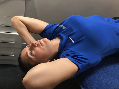 | Sit up straight in neutral spine position (or do this in standing). Draw your head up towards the ceiling and let your shoulder blades fall together and down your back. Place your fingers on your chin as a point of reference. Gently draw your head backwards, moving your chin back away from your fingers, trying to imagine lengthening the back of your neck. Don't nod your head down or tilt back, keep it level and imagine your head is a filing cabinet drawer. Your chin should be pulled back. |