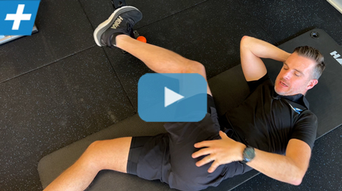 Lying on your side, have your knees so you are 90 degrees at the hip, and then you are 90 degrees at the knee. That's your starting point. So when you raise your leg off, you're not lifting just your knee. Your knee and your foot are going at the same time, so they've got to stay together. You can either let the whole weight go in between each rep, or you can lift it up as far as you can go without moving here and then coming down and tapping the ground. When you look at your knee, you should not be able to see your foot. That means I'm keeping in line my foot with my knee and I'm not rotated through the hip. Make sure your pelvis is not moving. You're only allowed to move at the hip joint. You should be feeling this in the top part of your buttock, where your abductors are. Keep your rep range nice and slow. |