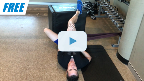| Loop a heavy powerband around a fix object that is solid and wont move under load. Then step your leg through and position an band as high up into the hip / groin as you can that is comfortable. On your back shift away form the anchor point so the band is pulling in an outward and slightly towards feet position / angle (inferior-lateral) (you need to be on a non-slip surface to make this effective). Then slowly move your knee with the opposite hand into flexion-adduction by bringing the knee to the opposite shoulder. Then try to add in internal rotation by pulling your foot outwards. You can use a sofa or chair to block the foot if need. |