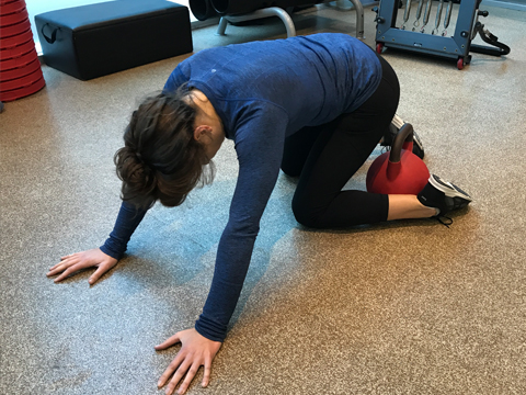 Hook your foot around a kettlebell or heavy object such as a sofa, so the hip is internally rotated. Then sit back towards the foot so you move into hip flexion and then reach forward with your hands. You can then oscilliate at end of the range but don't bounce.