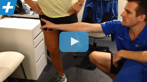 | Adopt a split stance, kneeling on one leg with other foot on ground in front of you. Keeping a bend in your knee, slowly push your hips backwards towards your back heel until you feel stretch in the back of your thigh on the front leg. Keep your lower back straight for maximal effect and hold |
