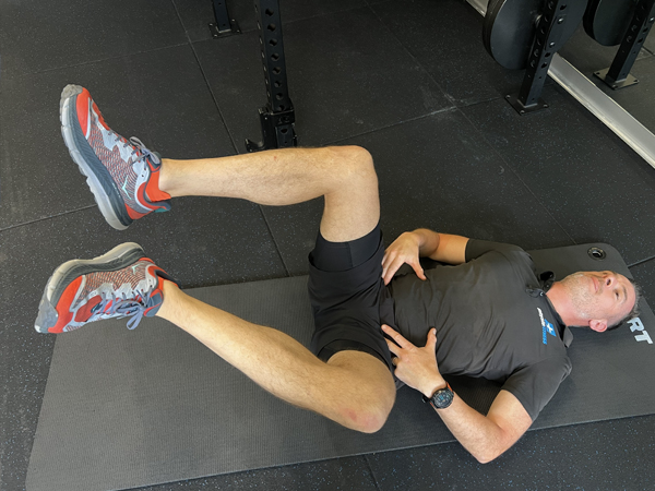 | This is the highest level knee fall out progression. The control of the leg movement adds difficulty as the core really has to work hard in order to maintain hip and torso stability and endurance in a table top position. |