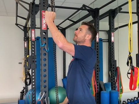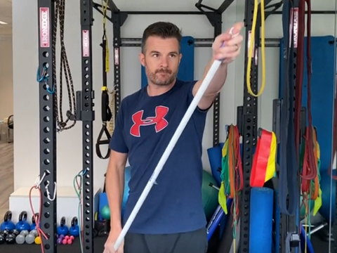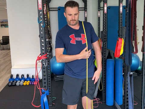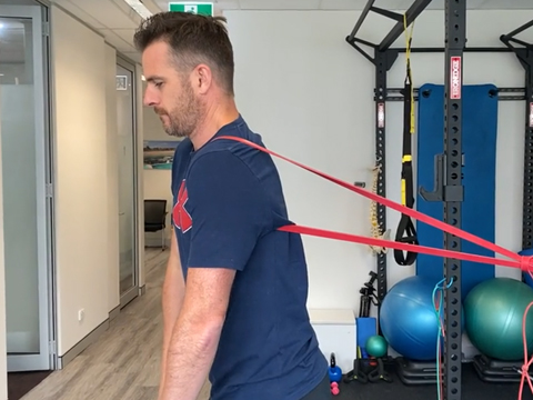Aim to complete the mobility exercises 2-3 times per day and the rehab exercises 1-2 sessions per day, EVERY day if possible over the next 3 weeks. From this week you should notice a change in the freedom of movement of the shoulder generally in mostly all of your PROM exercises that you do. You can go further into range if there is no pain but don’t push to stretching pain. The exercises this week advance slightly to start you passively abducting (arm away from body) up to 90° as able. Your new limit for external rotation (rotation outwards) is 20 degrees. DO NOT go beyond that unless your surgeon allows. Keep working on the scapular stabilisation exercises to improve your shoulder blade control, posture and base of support for the shoulder joint, in preparation for increasing scapular, weight-bearing. There are a few more exercises to help your mobility like the rope-pulley flexion exercise. You need to refrain from doing isometric strengthening work still at this stage while you heal, as active rotator cuff and shoulder strengthening and loading work will commence in the next stage (week 7). Therefore it's important that you build up the tone and activity in the shoulder in preparation with the passive-assisted exercises. The scapula band resisted exercises in this stage also help correct 'bad patterning' of the shoulder that has developed after all the pain, surgery and lack of use that has switched off the postural muscles and motor control mechanisms. As soon as you get up start on your exercises. You will wake up stiff and if you free it up early you will feel better immediately which helps you them and later in the day. External rotation maybe the first one to do in the morning as it will be the mostly relieving, then follow through with the others. Don’t skip exercises. Mix up the order too each day to add variety and see what works best for you. Sometimes a 3 circuits of one set for each exercise, works. Better than three sets of each exercise and then moving onto the next exercise. Focus on maintaining the 0 deg external rotation through your flexion movement in supine, and as much as you can with the pulleys and the standing wand. Towards the end of week 3 and into week 4 you might want to start doing a workout. You need to avoid resistance and load training right now as it may put too much stress on the system that’s trying to heal the shoulder, and at the same time you may tense the rotator cuff too much as well. So, my advice is to think about movement rather than strengthening and stick to body weight ex with some band options. You can even combine some of your shoulder mobility exercises into it if you want. Just watch the balance aspect and don’t get too adventurous! Into week 4 and here are the 2 exercises added in to this next ‘stage 2’. You’re still doing the previous exercises as well but make sure it’s “pure” movement this week especially with abduction and flexion. Your external rotation wand work will pay off here. OH, and don’t forget to use the squeeze ball still. Pump that fluid in the arm and keep the grip strength up. GOALS Flexion: 90-100 deg External Rotation 20 deg Abduction: 90-100 deg |