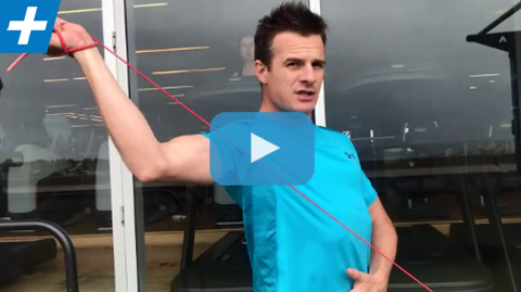Theraband adduction to correct overhead shoulder movement